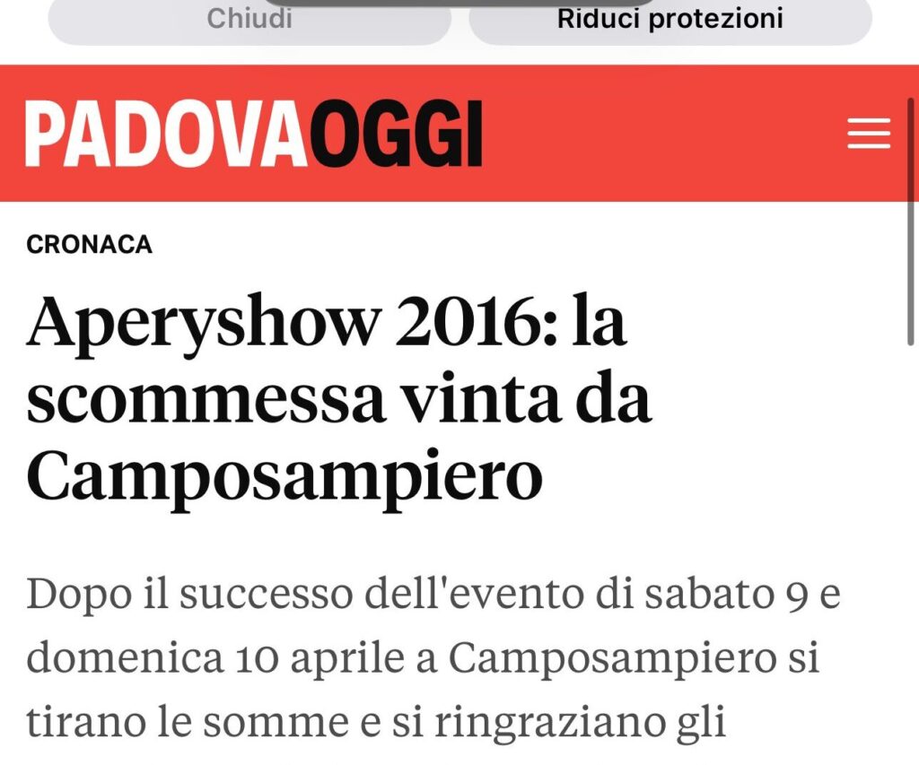 aperyshow che si è appena concluso è stato un grande successo di spettacolo di pubblico e di solidarietà, e non nasconde tutta la sua soddisfazione il sindaco di Camposampiero Katia Maccarrone: “Posso aggiungere la soddisfazione di un evento che si è svolto in modo positivo e organizzato.