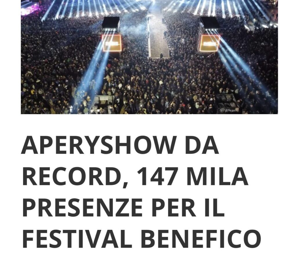 Palco futuristico, dj e artisti da tutte le parti d’Italia ed Europa, l’intento solidale. Questa la ricetta vincente dell’Aperyshow “Elements of love”, numeri da record per il charity event. Gli organizzatori e l’amministrazione comunale: “Uniti si possono raggiungere grandi risultati, a breve consegneremo gli assegni alle associazioni coinvolte”. L’annuncio: la decima edizione di Aperyshow si celebrerà dal 24 aprile al primo maggio 2025